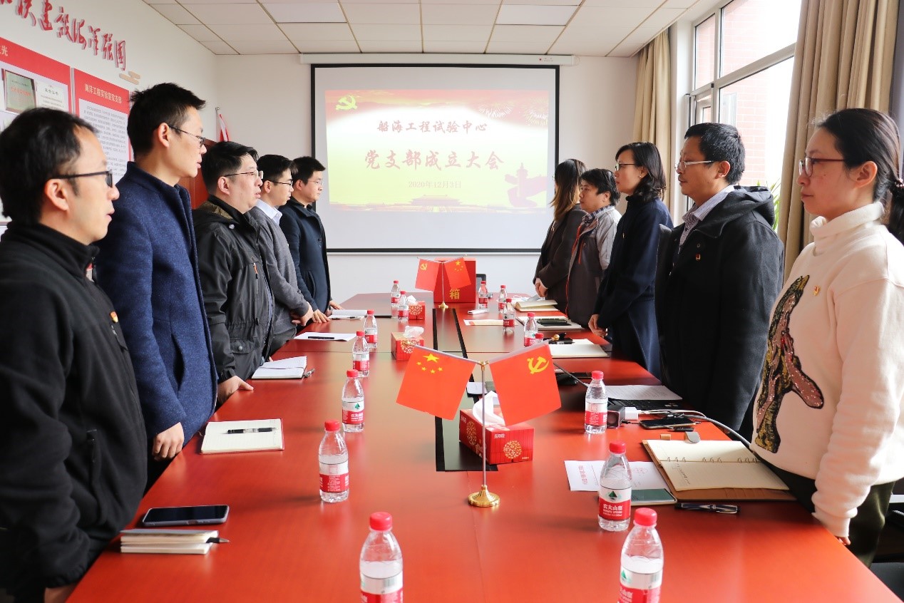 2020年12月3日中午,船海工程试验中心党支部成立大会暨第一次党员大会在海洋深水试验池党员活动室隆重举行,船建学院党委书记周薇、党委副书记王喜芳出席会议,船海工程试验中心党支部全体党员到会,会议由党员大会召集人李俊主持。党员活动室内气氛分外热烈、同志们胸前的党徽熠熠生辉,支部成立大会在雄壮的国歌声中开始。