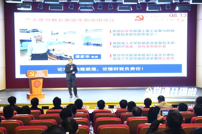 远海岛礁建设是建设海洋强国、维护国家安全的重要任务。这个工程的开路先锋是一艘叫做“天鲸”号的挖泥船,而她的背后凝聚着上海交大船建学院谭家华教授以及他带领的团队的智慧和汗水。设计研究所党支部书记陈新权在微党课中,为大家生动讲述了二十年来他们团队秉承着“核心技术是抄不到、买不来的”理念,攻坚克难,求真务实,攻破挖掘系统、定位系统、传输系统等多项卡脖子技术,打破发达国家的技术垄断,让我国的大型绞吸挖泥船的设计和制造“从跟跑到开始领跑世界”的故事。他的微党课让台下观众们深切认识到了做科研,就要努力服务国家战略,敢于创新,取得核心技术突破,只有这样,才能为实现中华民族伟大复兴的中国梦作出贡献!