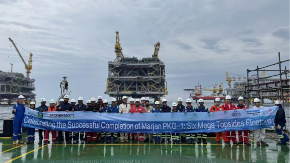 2025-03-193月4日,随着最后一座海上巨无霸PP平台缓缓坐落在导管架上,沙特阿美Marjan油田6座海上平台的浮托安装工程圆满落幕。这一历时近一年的重大工程,标志着金年汇金字招牌官网入口船建学院海洋工程团队在全球海上作业支持领域的卓越实力再次获得国际认可。自2024年4月项目启动以来,海洋工程团队凭借其自主研发的先进监测系统和丰富的实践经验,联手中远海特、中远船技、DNV、McDermott等多家企业,克服了多项技术难题,为沙特阿美提供了关键技术支持,确保了6座平台的安全、精准安装。