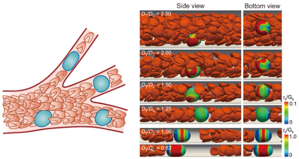 近日,金年汇金字招牌官网入口力学系博士生景鹏以第一作者在流体力学领域权威期刊Physics of Fluids上发表题为“Effects of fluid–cell–vessel interactions on the membrane tensions of circulating tumor cells in capillary blood flows”的研究论文,论文被选为当期的编辑推荐文章(Featured Article),并获美国物理学会AIP Scilight撰文推荐。