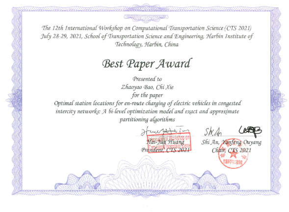 2022-01-132021年7月28日至29日,第十二届计算交通科学国际研讨会(The 12th International Workshop on Computational Transportation Science)暨中国管理科学与工程学会交通运输管理分会年会在黑龙江省哈尔滨市召开。本届大会以现代城市交通治理进程中所面临的技术与政策问题为主要研讨议题,包括新交通模式的应用与优化、综合交通系统协同发展、交通流分析与网络优化、交通节能减排技术与政策等。大会邀请了多位海内外顶尖学者进行大会报告,为所有参会的老师和同学带来计算交通科学领域最新的研究成果。