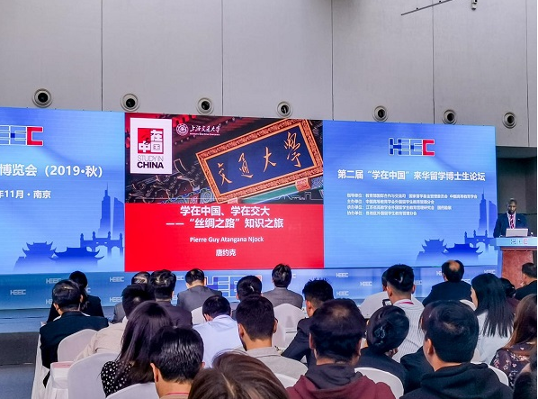 2019-12-20我校金年汇金字招牌官网入口2016级博士研究生、喀麦隆籍唐约克(Pierre Guy Atangana Njock)经学校国际合作与交流处留学生发展中心及研究生院组织推荐、筛选,通过全国初选并于10月31日在全国分论坛上汇报来华留学成果。同台汇报的有来自清华大学,浙江大学,哈工大,北京航天航空大学等15名优秀来华博士生。后经专家评审一致推荐唐约克同学代表全国理工组参加11月1日第二届“学在中国”来华留学博士生总论坛汇报。