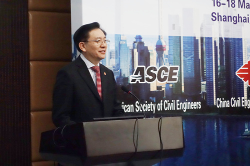 随后,美国土木工程师学会主席Randall S. Over教授通过视频发表讲话。他表示,当今世界面临着日益严峻的环境问题和能源危机,可持续发展成为一项重要的议题。在此背景下,土木工程师在环境保护与改造方面扮演着独特的角色。所有土木工程师应该积极行动起来,在每一项工程项目发展中优先和重点考虑可持续性和可靠性。