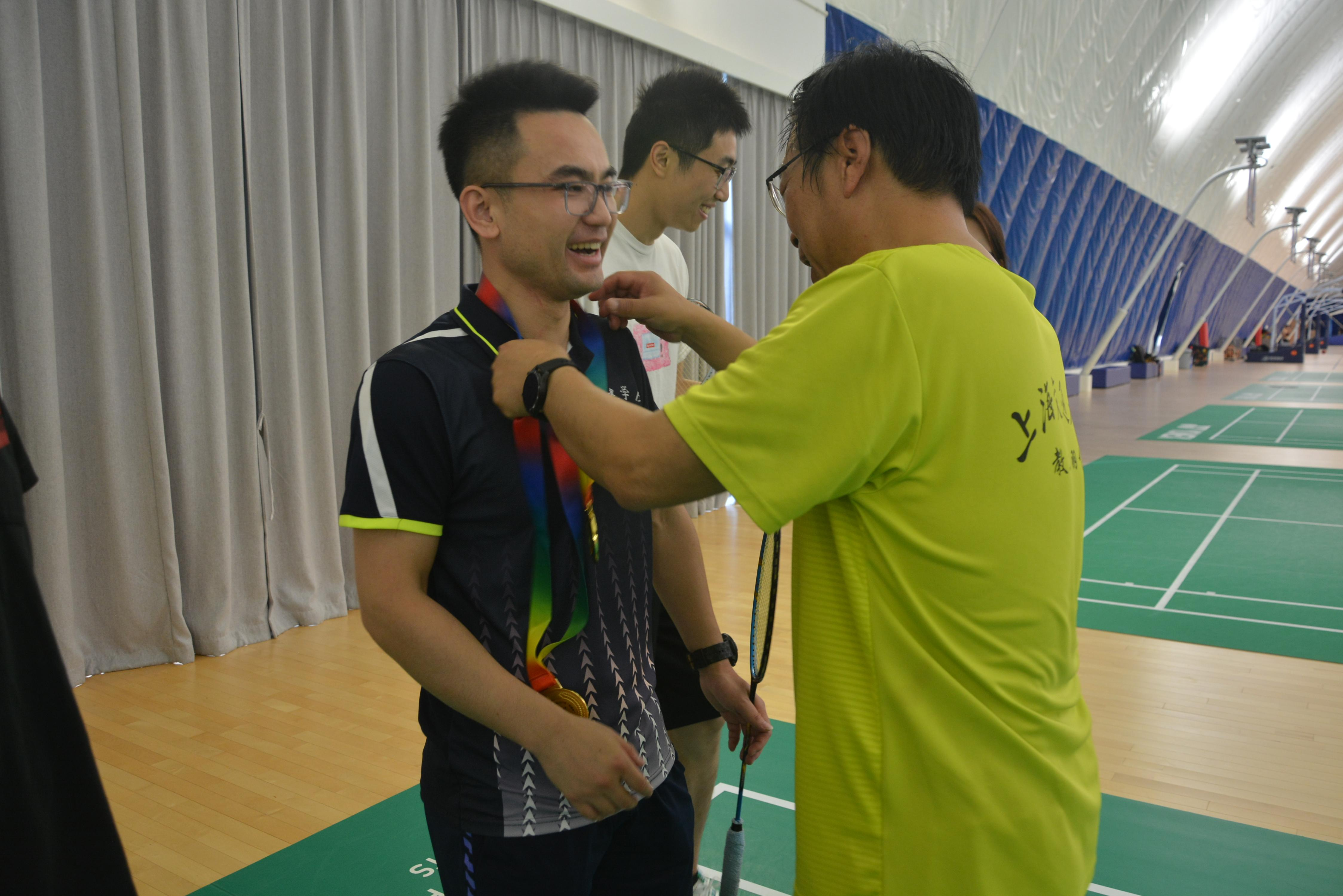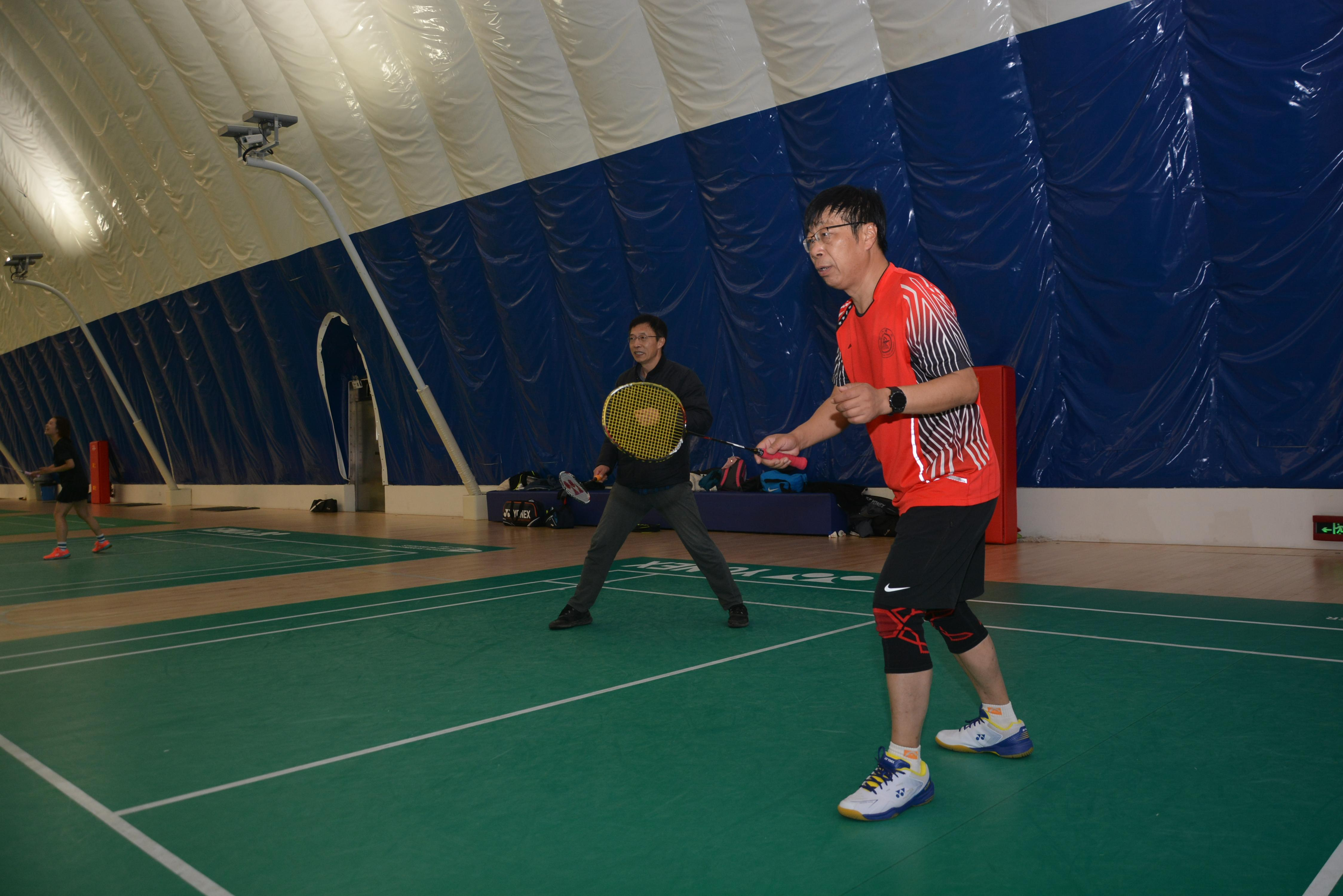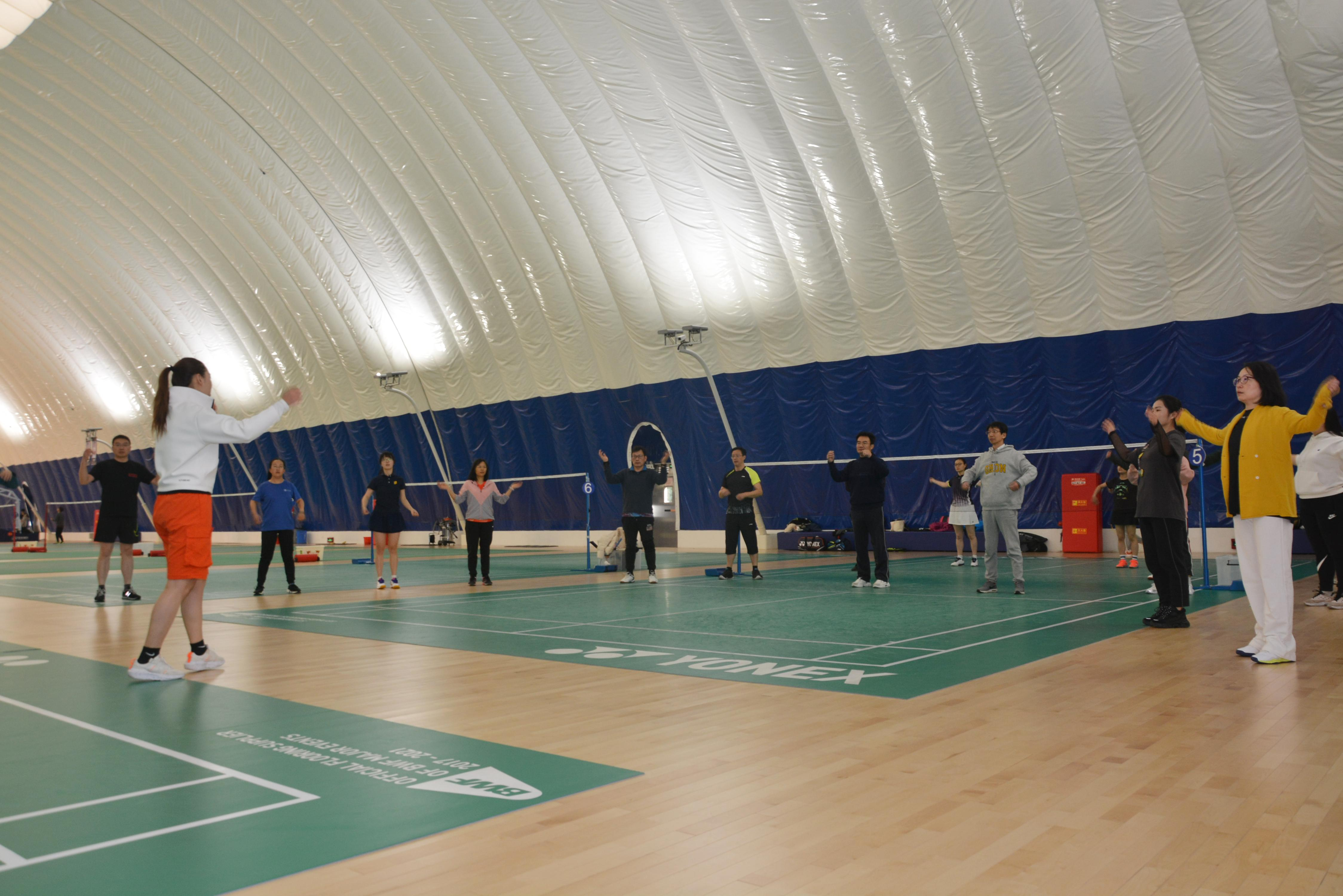 之后是“五羽轮比”趣味赛,由张卫刚、王喜芳、薛鸿祥和赵金城四位老师领队,现场招募选手组成四支五人组队伍,按照“五羽轮比”规则,一方获得10分后双方各替换一名选手进入下一局,以此类推,直到赢得50分。经过激烈的角逐,由薛鸿祥和张卫刚带领的队伍分别获得趣味赛第一、二名,赵金城和王喜芳带领的队伍分别获得三、四名。