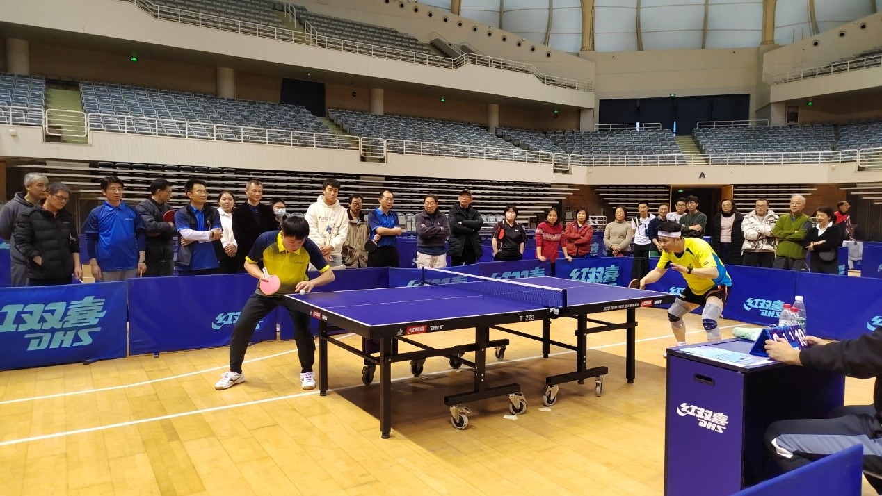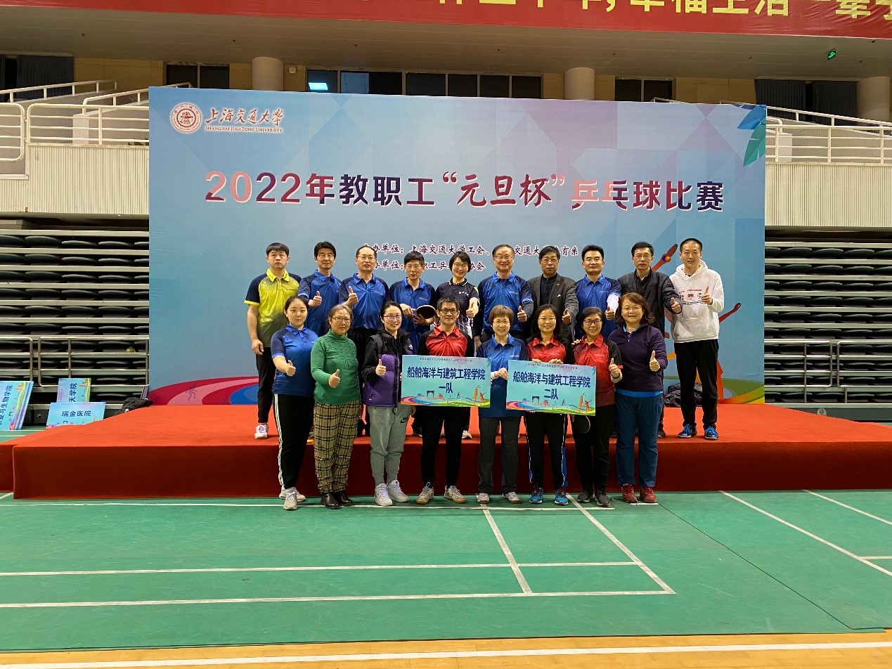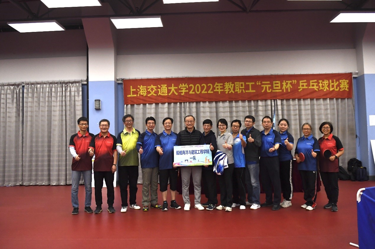1月8日,金年汇金字招牌官网入口一年一度的“元旦杯”乒乓球团体赛在致远游泳馆和霍英东体育中心拉开序幕,船建学院选派20余名教职工共两支代表队参加比赛。比赛分为甲乙2个组别,船建一队征战乙组晋级赛,船建二队征战甲组巅峰对决。船建学院党委书记周薇、海装院党委书记蒋如宏、船建党委副书记王喜芳、船建工会主席刘铸永带队出征。