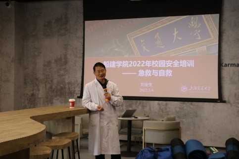 为增强广大教职工的自我保护意识和能力以及普及医学急救知识,3月4日中午,船建学院工会在木兰楼一楼咖啡厅举办了急救与自救健康知识讲座。本次活动邀请到上海交大校医院院长刘金生作专题培训。学院党委书记周薇、副书记王喜芳、工会主席刘铸永以及学院近40名教工参加了此次活动。活动由刘铸永主持。