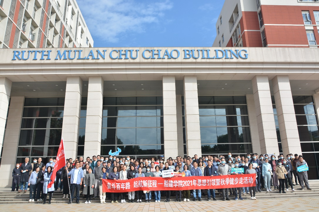 2021-12-09百年征程波澜壮阔,百年初心历久弥坚。2021年是中国共产党成立100周年,也是学院实施“十四五”规划开局之年。2021年11月19日中午,船建学院工会举行“奋斗百年路,启航新征程”-2021年思想引领暨秋季健步走活动,旨在进一步激发学院教职工坚定爱党信念,引导广大教职工感党恩、听党话、跟党走,以昂扬向上的精神风貌在学院建设中建功立业、做出新贡献。