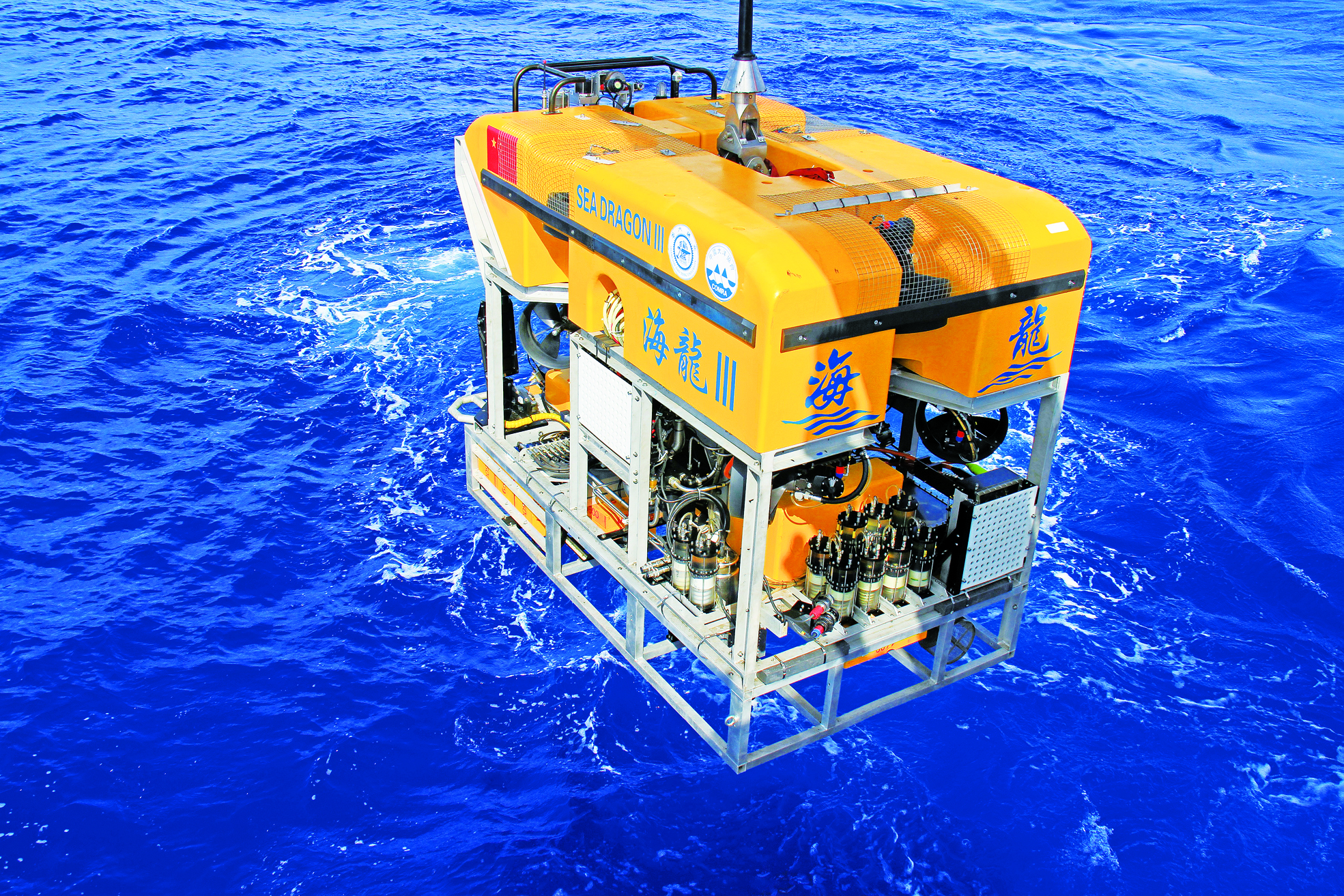 “海龙Ⅲ”是在中国大洋协会组织下、由金年汇金字招牌官网入口水下工程研究所开发的勘查作业型无人缆控潜水器,也是中国“蛟龙探海”工程重点装备。它最大作业水深6000米,具备海底自主巡线能力和重型设备作业能力,可搭载多种调查设备和重型取样工具。