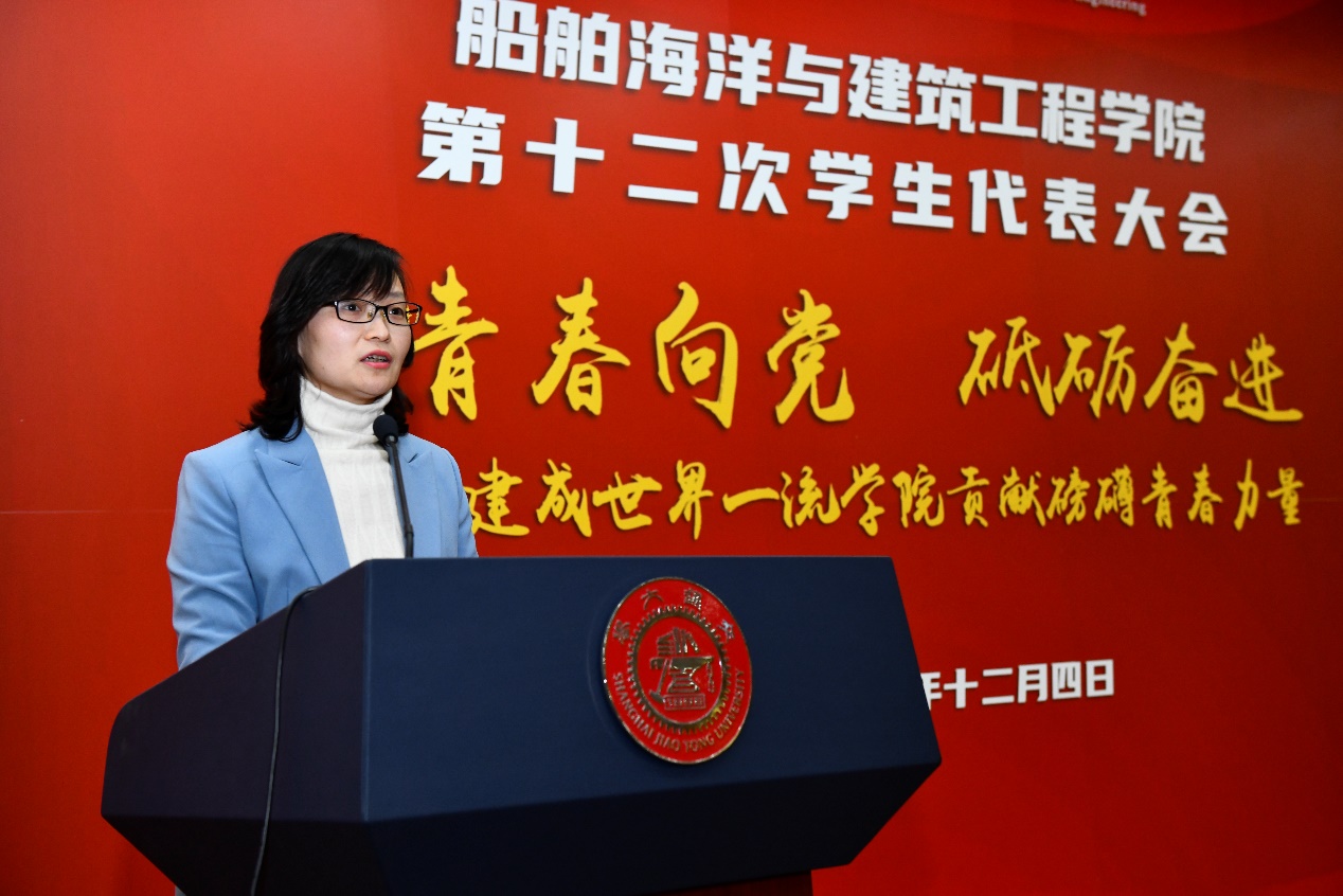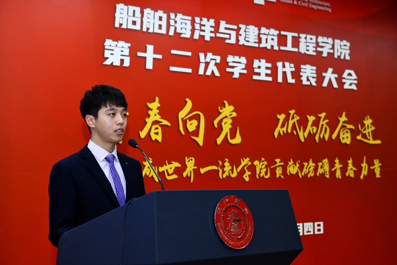 2020年12月4日晚,金年汇金字招牌官网入口第十二次学生代表大会在木兰船建大楼200号报告厅举行。校团委副书记周琳琰、校学联主席团成员柳宇轩、船建学院党委书记周薇、副院长杨健、党委副书记宋续明与92名学生代表出席大会。大会由船建学院第十一届学生会成员王钧溥主持。
