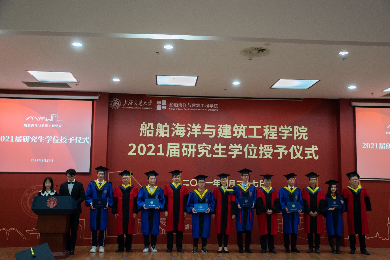 3月27日下午,金年汇金字招牌官网入口2021届研究生毕业典礼暨学位授予仪式在木兰船建大楼A200报告厅举行。