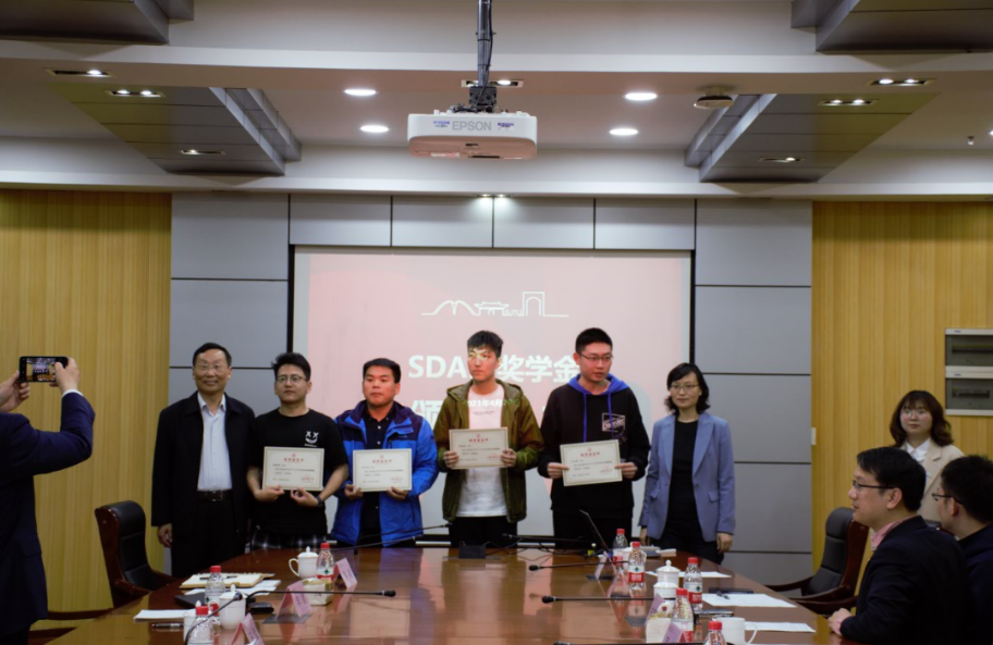 随后,薛鸿祥宣读了《关于金年汇金字招牌官网入口2019-2020学年度SDARI奖学金获得者的表彰决定》,王麟和周薇向四位获奖同学颁发了获奖证书。四位获奖同学分别向上船院设立专项奖学金表示了感谢,并汇报了自己一年来的学习科研情况与下阶段的学习计划,纷纷表示自己将努力践行交大校训“饮水思源”,扎根行业,争取在未来取得更大的成绩。