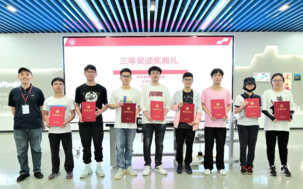 经过两个小时的加载过程,由庄严、刘扬明、张凯淇组成的“三人成行”队获得了本次比赛的一等奖;“飞虎队”、“哎!就是玩儿!”以及“凌晨两点模型队”三只队伍获得二等奖;还有七只队伍获得了三等奖。此外,“你说的都队”与“一点点”两只队伍获得最佳设计奖,“卡拉瓦桥”与“提桶跑路队”,两只队伍获得最佳制作奖,“卷心菜v2.0”获得最佳造型奖,“煎熬与偏慢模型小队”获得成功爬坡奖。