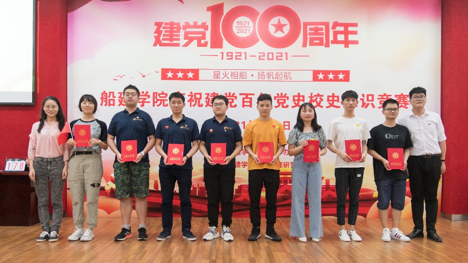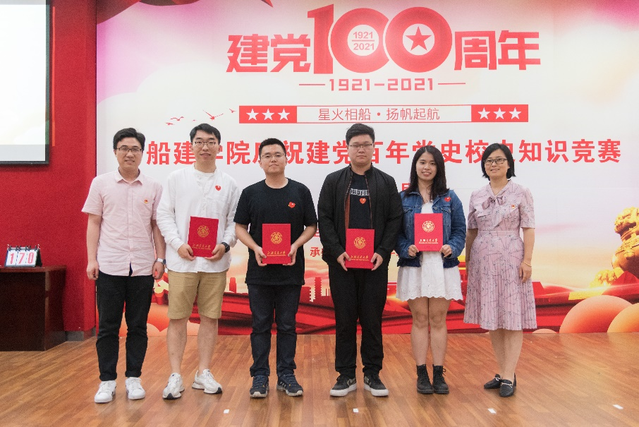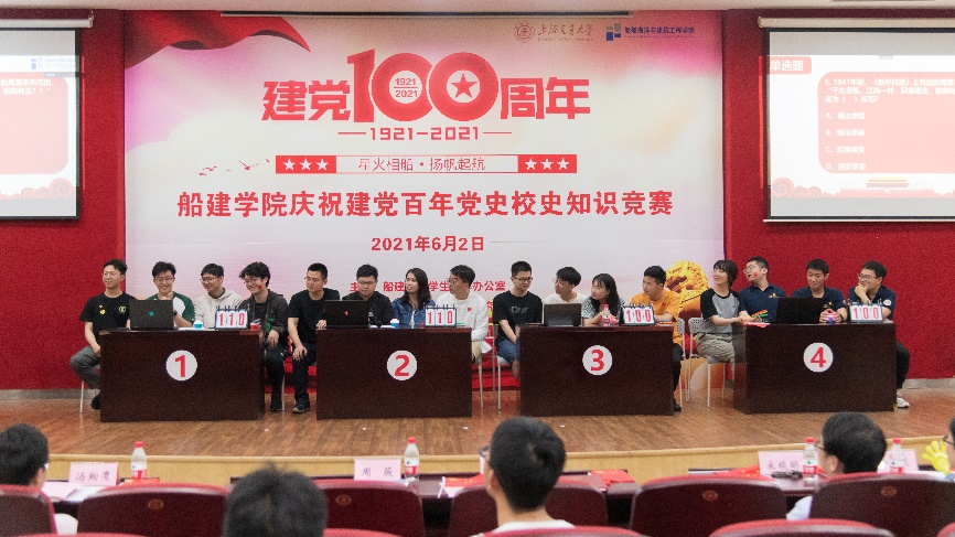 为庆祝中国共产党成立100周年,深入开展党史学习教育,金年汇金字招牌官网入口于6月2日在木兰船建大楼A200报告厅开展了“星火相船,扬帆起航”党史校史知识竞赛活动。校学指委秘书长、学生处处长、学生工作党委书记侯士兵,船建学院党委书记周薇,船建学院党委副书记宋续明,校学指委党建科汤翔鹰,船建学院学工办主任查芳灵以及各年级思政老师参与了本次活动。