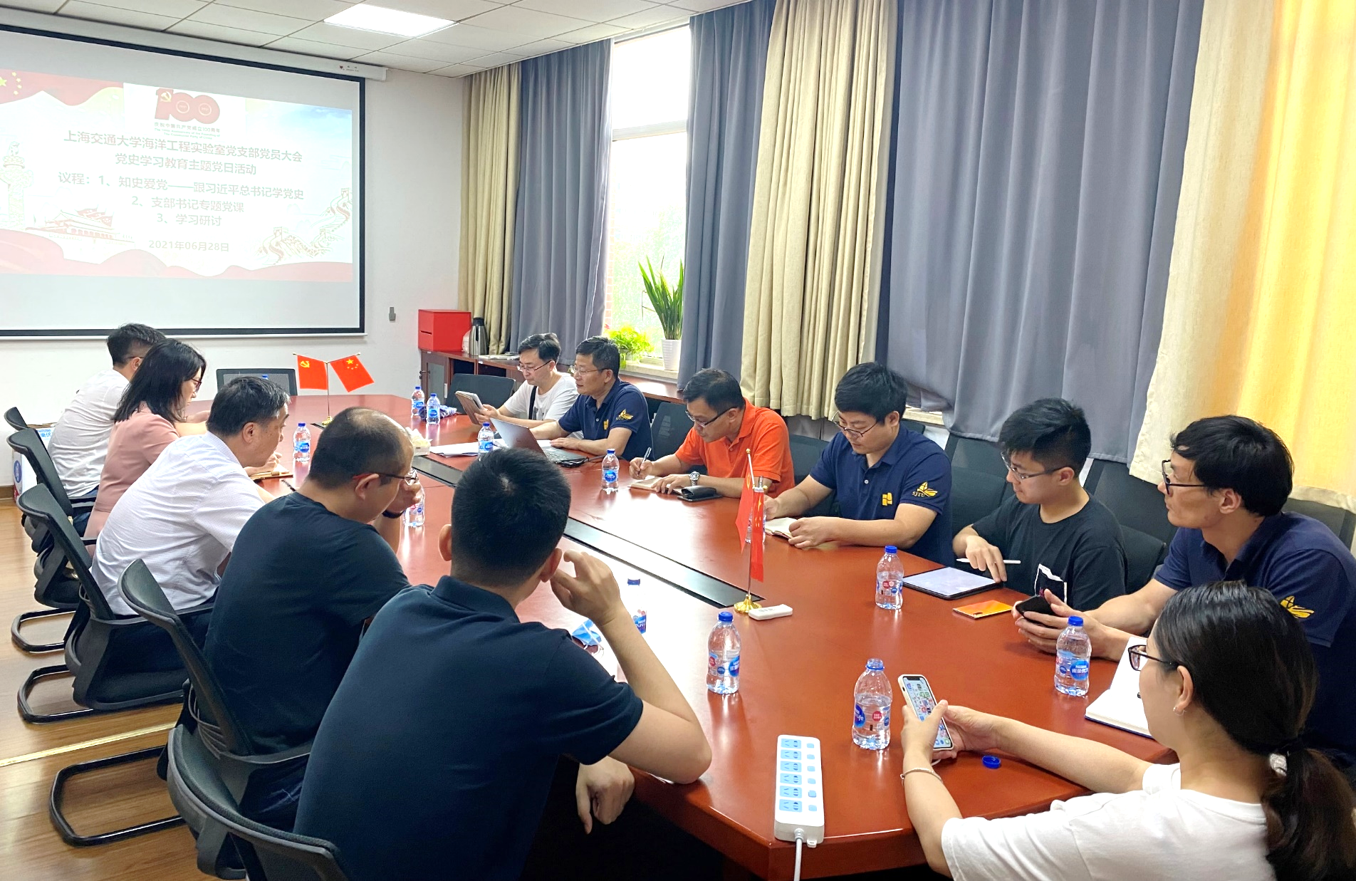 为庆祝中国共产党成立100周年,深入推进党史学习教育活动,2021年6月28日,船建学院海洋工程实验室党支部围绕“知史爱党”主题,开展专题党课活动。支部书记肖龙飞给全体支部党员上了“勇担重任,无私奉献,投身大海洋战略重大任务”的专题党课,学院党委副书记王喜芳参加了本次党课活动。