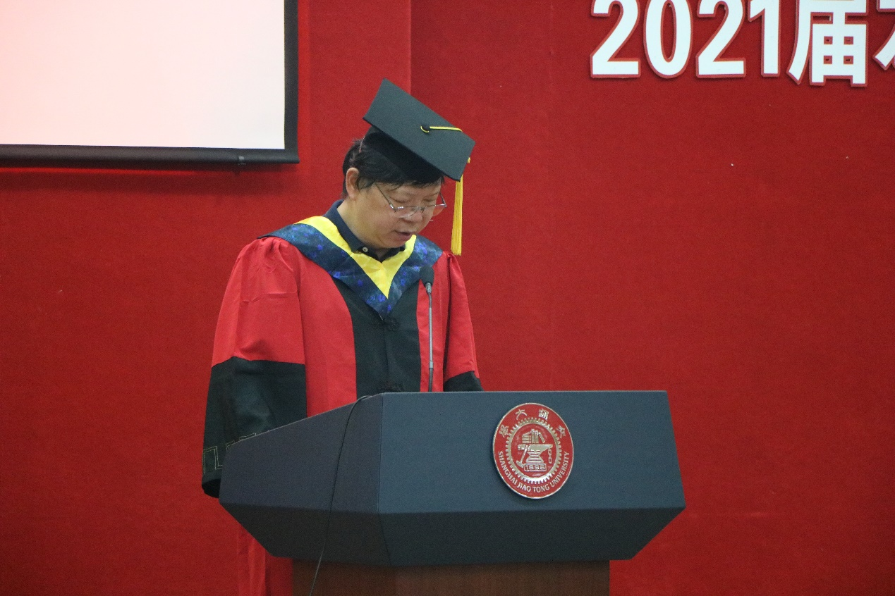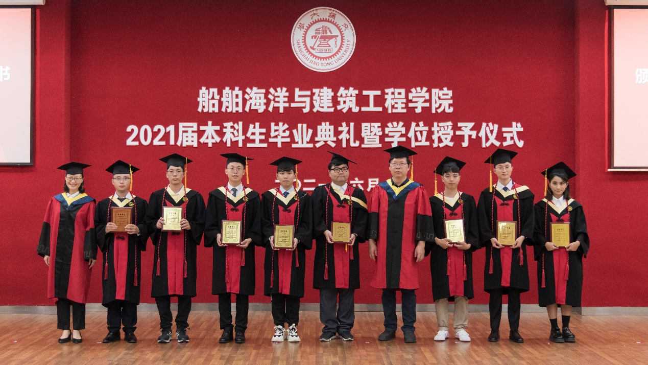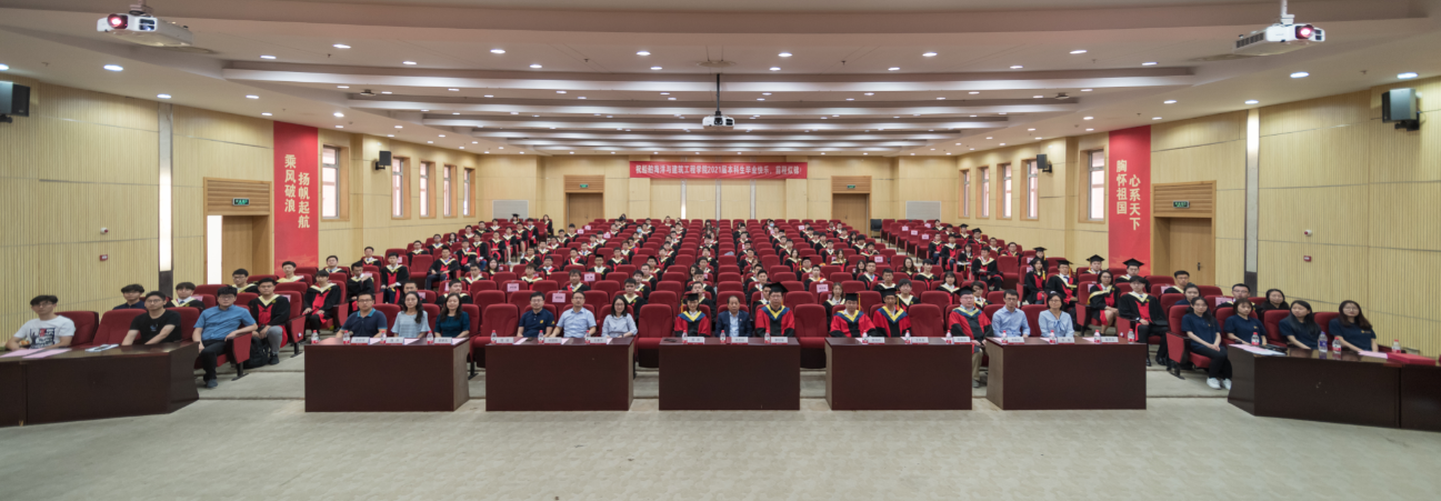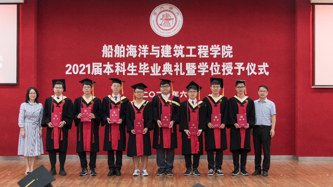 金年汇金字招牌官网入口校长、中国工程院院士林忠钦,船建学院党委书记周薇,院长廖世俊,党委副书记王喜芳、宋续明,副院长、船舶与海洋工程系系主任薛鸿祥,副院长、工程力学系系主任王本龙,土木工程系系主任陈锦剑,交通运输工程系系主任李朝阳,土木工程系副系主任程斌,2021届本科生班主任代表郭孝先,学生工作办公室主任查芳灵,校友工作负责人魏燕,2021届本科生年级思政教师张奕民,学生党建工作负责人蒋雨航,学生团学工作负责人陈哲,以及全体毕业生同学出席。仪式由学院就业工作负责人梁晴雪主持。