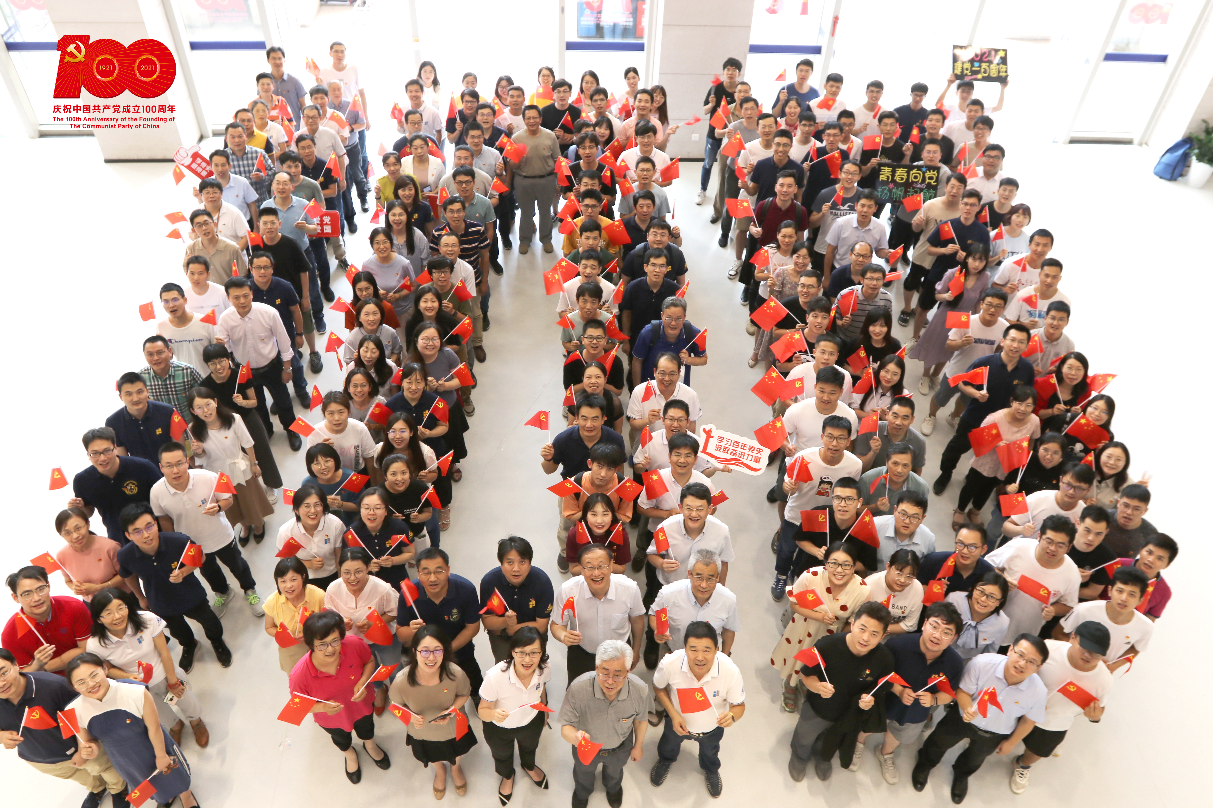 学院党委组织庆祝建党100周年快闪摄影活动,学院师生热情高涨、踊跃参与。大家在木兰楼一楼大厅组成“100”的字样,高呼“生日快乐”,向党致敬,用最炙热的情感祝福伟大的中国共产党100岁生日快乐。