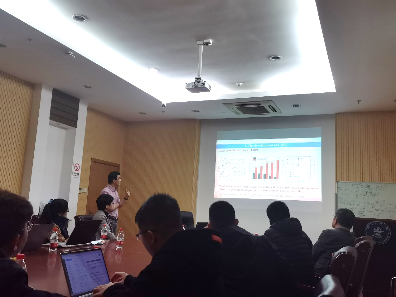 11月11日下午,武汉大学土木建筑工程学院教授于清亮应我院教师刘清风邀请访问船建学院土木工程系,并在木兰楼A211会议室做了题为“可持续冲击超高性能混凝土研究进展”的专题讲座。船建学院副院长杨健,土木工程系教师刘宜平、陈兵、何军、胡黎俐等30余名从事混凝土结构材料研究的师生代表出席了报告会。