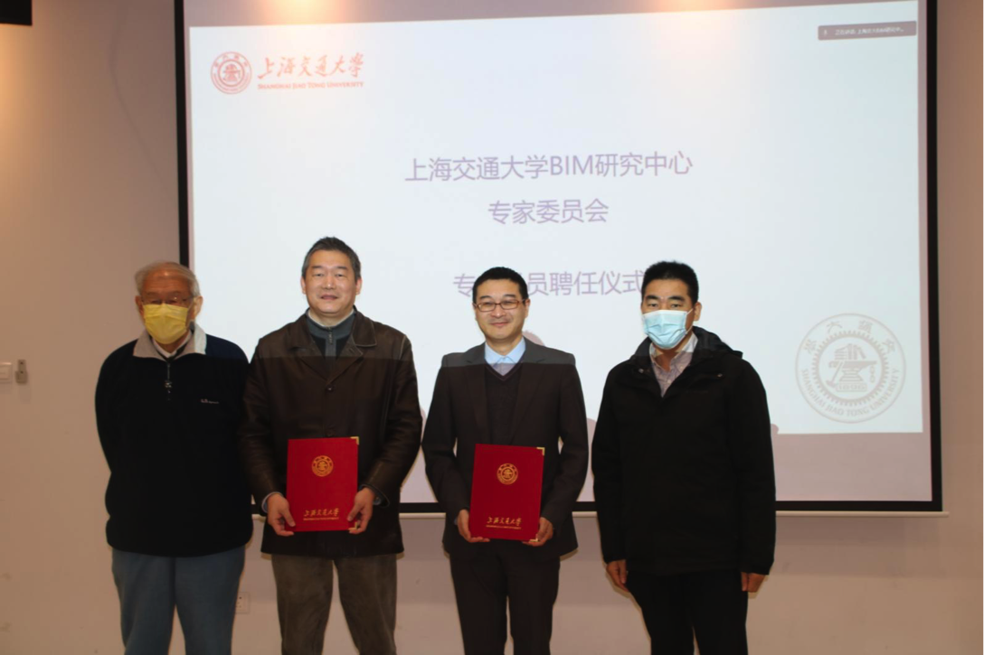 随后进行了金年汇金字招牌官网入口BIM研究中心专家委员会新增专家委员聘任仪式,由上海交大BIM研究中心主任刘西拉、执行主任邓雪原给线下参与本次活动的两位专家委员(上海市城市建设设计研究总院数字中心主任杨海涛、上海江欢成建筑设计有限公司总建筑师程之春)颁发聘书。