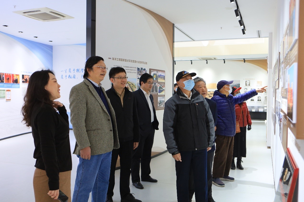 学院师生首先陪同校友参观了船建学院 “与国同行”院史院情展示馆,并详细介绍了学院和祖国风雨同舟的建设发展历程。科学家精神始终流淌在船建人的血液中,激励着船建人不忘初心、敢为人先,在新时代续写科技创新的辉煌。