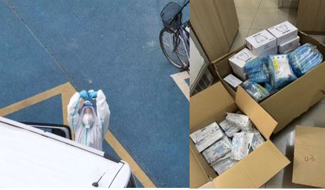 校内思政教师为学生送防疫物资