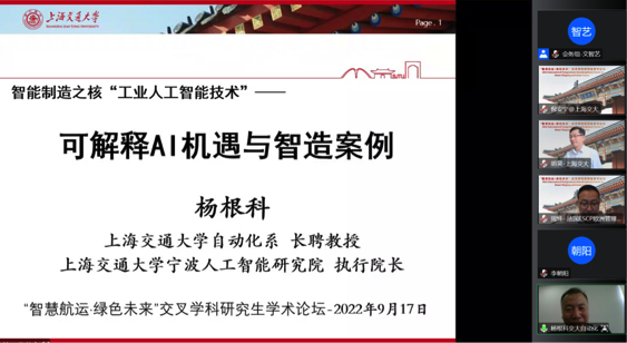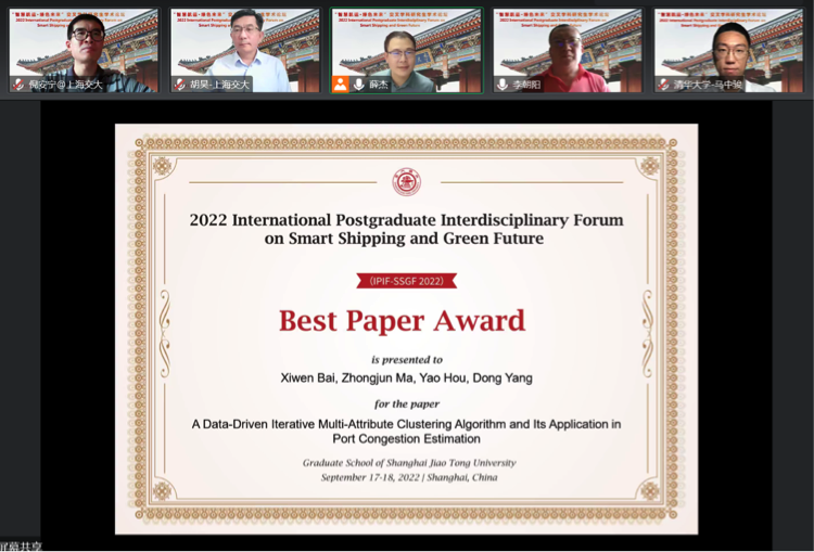 9月17日-18日,由金年汇金字招牌官网入口研究生院立项支持、金年汇金字招牌官网入口主办、交通运输工程系承办的“智慧航运·绿色未来”交叉学科研究生学术论坛(IPIF-SSGF 2022)以在线方式成功举办。来自国内外多家交通、航运专业相关高等院校、科研院所等单位的学者在云端交流探讨,围绕“智慧航运·绿色未来”分享学术成果。