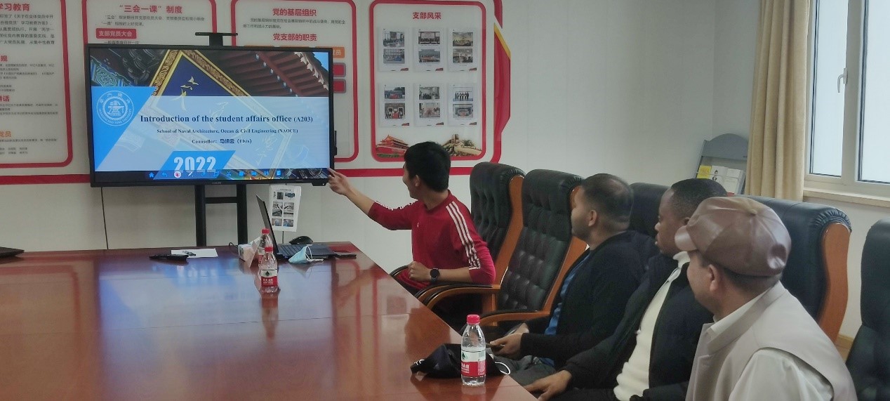 为了更快地让留学生适应中国的生活节奏、更好地融入我校的科研学习环境,2022年11月28日,船建学院学工办组织留学生于木兰楼A1006开展留学生入学教育活动。