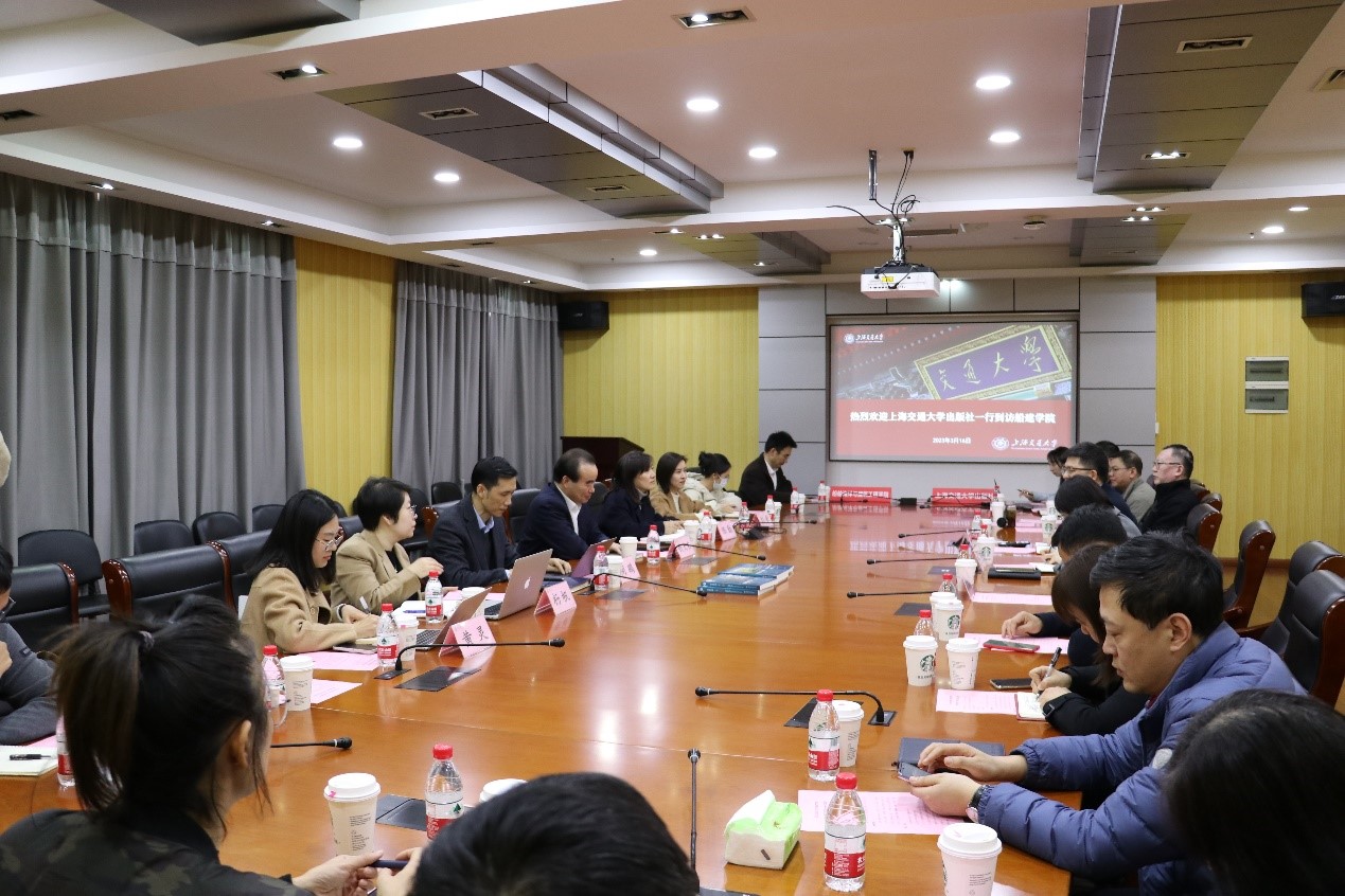 3月16日,金年汇金字招牌官网入口出版社党委书记钱天东,副书记周鹏,副社长陈勤,教材出版中心主任杨帆,融合发展中心主任刘敏等一行赴船建学院召开教材建设工作交流研讨会。船建学院党委书记周薇,副院长杨健、薛鸿祥,本科、研究生教务办主任袁敏、刘蓉洁,各学科专任教师及本科教务办全体成员参加会议。