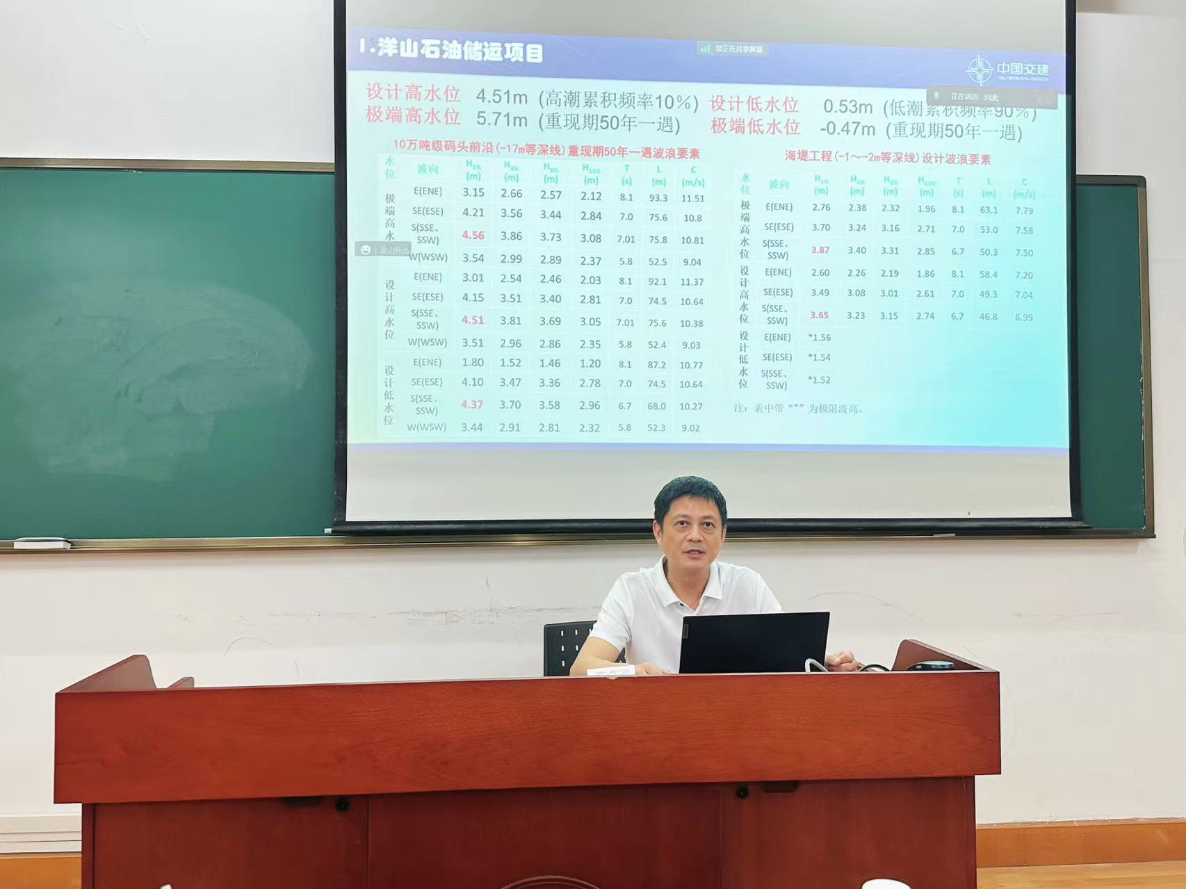 本次活动还正式启动了“航博论坛”。为交流国际科技前沿先进技术和重大工程建设成果,为党和国家科技事业发挥博士群体主力军、播种机和智囊团作用,临时党支部特创建“航博论坛”。博士班班长、高级工程师、教授刘速同志作为第一讲的主讲人,专题讲授了《海上交通基础设施接岸结构设计要点暨科普著绘实践》,结合多年从业参与的洋山港深水港建设、澳门机场改扩建、连云港岸线修复建设等一批业界影响深远的重大性工程,认真教授了海上交通基础设施建设的关键要点,同时结合以世界著名港口上海洋山深水港为背景,创作了《超级港口建成了》著名科普读物的编著,交流了工程类科普作品的构思心得,主讲内容深入浅出、案例丰富、数据详实、观点系统权威,给同学们产生强烈互动共鸣,现场交流热烈。