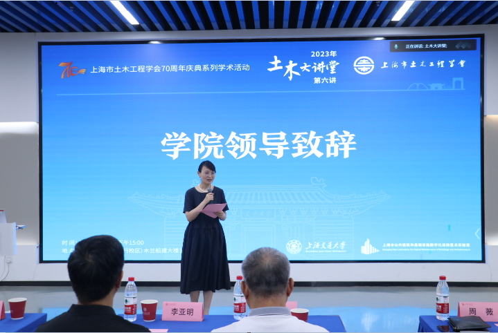 崔敉代表主办方感谢专家同行们的到来,对本次“土木大讲堂”的召开表达热切期待。她肯定了承办单位上海市公共建筑和基础设施数字化运维重点实验室近年来在推进土木工程行业智慧化信息化方面所做的贡献,并将其看作上海本土土木人的骄傲。期待实验室继续将数字化设计、施工、运维研究和相关技术进行开发整合,借助上海交大的科研和人才实力,为智慧城市建设事业添砖加瓦。