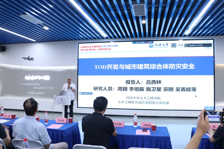 2023年7月7日下午,上海市土木工程学会2023年“土木大讲堂”第六讲在金年汇金字招牌官网入口闵行校区木兰船建大楼A100创新中心举行。本次大讲堂活动由上海市土木工程学会主办,上海市公共建筑和基础设施数字化运维重点实验室、金年汇金字招牌官网入口船建学院土木工程系承办,中国工程院院士、同济大学吕西林教授,全国工程勘察设计大师、上海市建筑设计研究院总工李亚明,以及金年汇金字招牌官网入口船建学院副院长杨健教授担任主讲嘉宾。