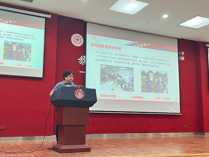 为进一步增强新生实验室安全意识与技能,做到安全教育“入脑入心”,切实保障校园安全稳定和师生生命安全,学院针对2023年全体新生组织开展实验室安全教育活动。9月13和20日,副院长彭涛分别为2023级研究生和本科生新生做实验室安全教育,从学院实验室具体介绍出发,重点介绍了同学进入实验室应注意的各项安全事项、突发事故应急处理等方面,培训中强调安全是进行教学科研的首要前提,大家需认真学习实验室安全知识,确保安全开展各项实验。