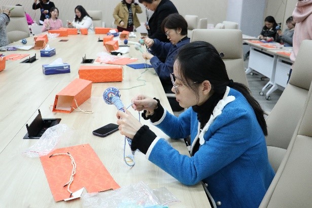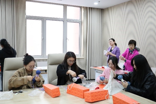 为弘扬中华优秀传统文化,传播健康生活理念,11月15日,船建学院工会开展“巧做养生锤 敲响幸福曲”女工手工制作活动。本次活动由学院工会女工委员曹嘉怡主持。