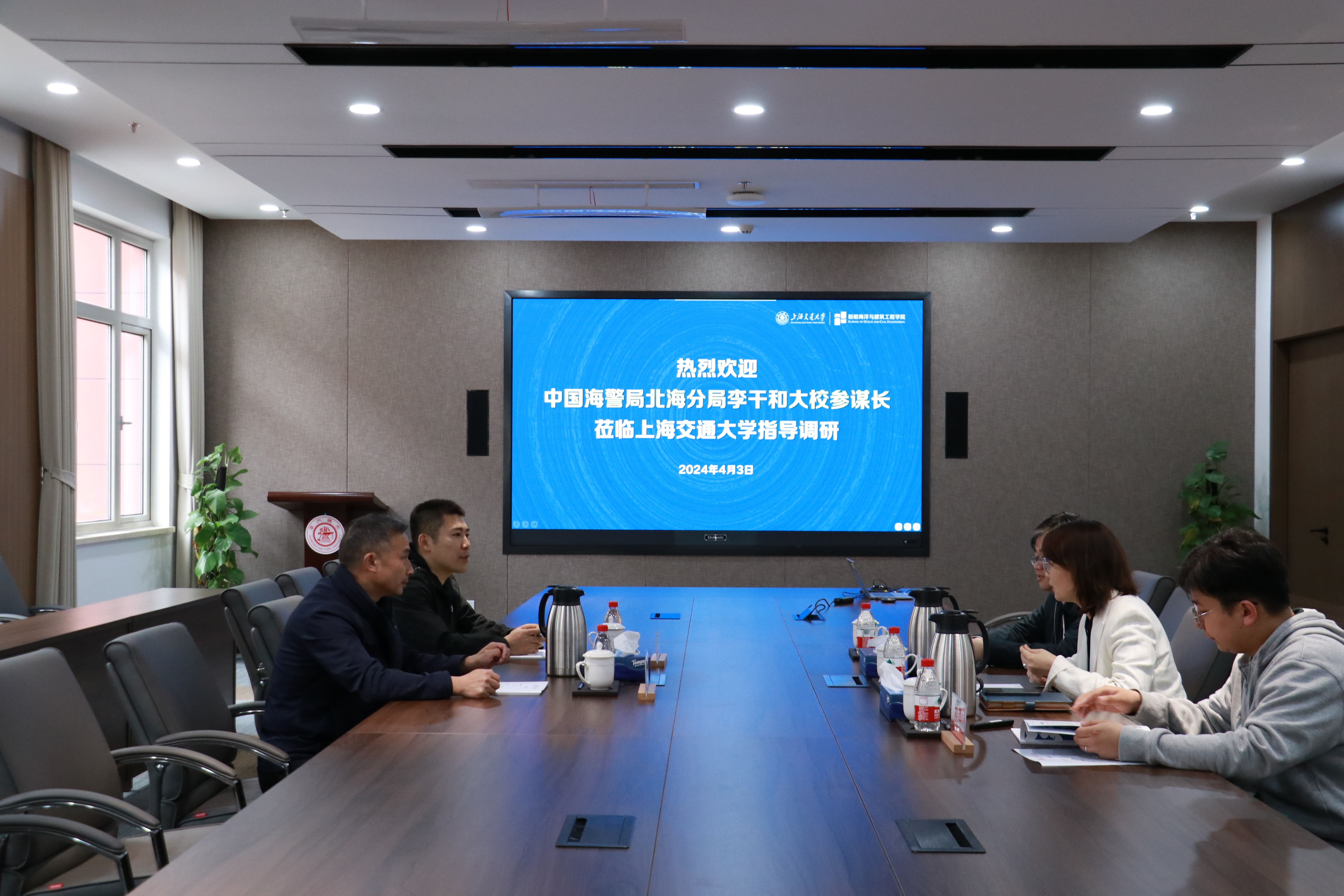 4月3日,中国海警局北海分局大校参谋长李干和来校考察调研。船建学院党委书记周薇,党委副书记、船舶与海洋工程系主任薛鸿祥,学校教务处副处长、海洋智能装备与系统教育部重点实验室副主任王鸿东参加活动。李干和大校参谋长参观了校史博物馆、学生创新中心船建分中心和水下工程研究所,详细了解了船建学院建设发展情况以及无人舰船自主航行控制技术报告,考察了强军计划学员在校学习情况。双方就警校合作事项交换了意见。