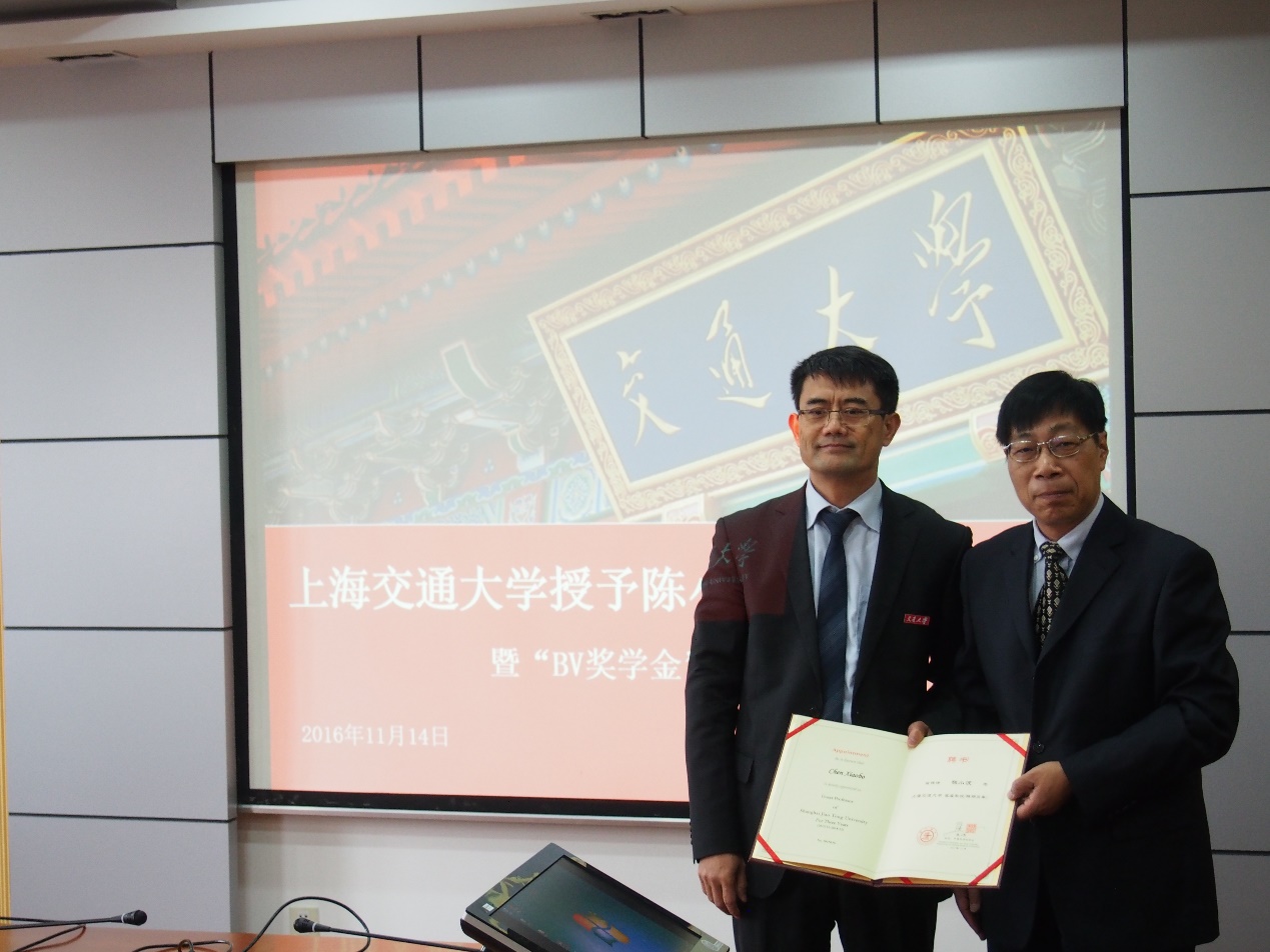 11月14日上午,金年汇金字招牌官网入口授予陈小波客座教授仪式暨“BV奖学金”颁奖仪式在木兰船建大楼A1002室举行。BV总部国际合作部部长、亚太区深水技术中心总经理陈小波博士,BV上海先进技术研究中心技术总监周才民,金年汇金字招牌官网入口党委书记张卫刚,副院长万德成,党委副书记杨建军,以及四名获奖同学出席了此次颁奖仪式。会议由万德成主持。