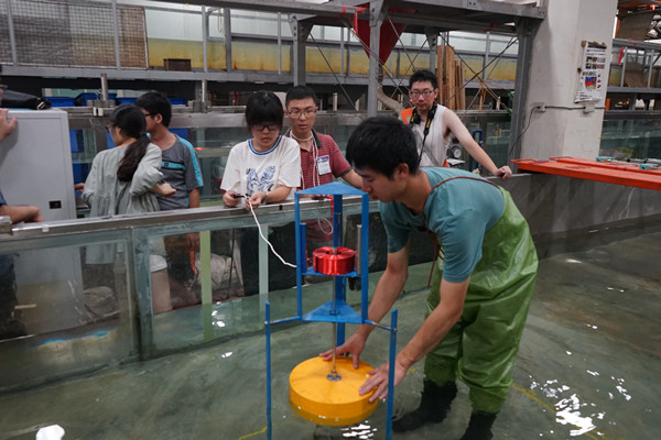 此次竞赛,上海交大两支参赛队伍由船建学院教师车驰东、孟帅、肖龙飞指导,1985届造船系校友全程支持。冠军队伍“小水车”灵活运用了机械振动与噪声学课程的专业知识,充分利用立体力学涡激振荡原理。通过大量的前期试验和数值计算,最终完成了作品《自适应涡激振动发电机》,在展示实测与试验阶段均获得评委的一致好评。“海上风队”则凭借极具创新型的作品《非线性直驱振荡浮子式波浪能发电装置》,给评委与参赛师生留下了深刻印象,荣获佳作奖。