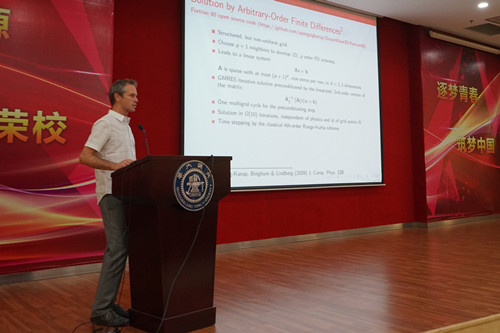本届国际暑期学校邀请了来自中国、美国、法国、日本、韩国、丹麦和意大利的29名著名专家学者为同学们授课。这些专家学者是:美国密歇根大学教授Robert F. Beck和Jing Sun,加州大学伯克利分校教授Ronald W. Yeung,乔治梅森大学教授Chi Yang,新泽西理工学院教授Wooyoung Choi,德州农工大学教授Jun Zhang,法国马赛中央理工学校教授Bernard Molin,英国斯特莱斯克莱德大学教授AtillaIncecik、博士Qing Xiao和Zhiming Yuan,丹麦技术大学教授Harry Bingham,日本横滨国立大学教授Takehiro Higuchi和Tetsuo Okada,韩国首尔国立大学教授Yonghwan Kim以及意大利CNR-INSEAN船舶研究所的Alessandro Iafrati博士,清华大学教授孙超,浙江大学教授白勇,上海大学教授卢东强,中国科学技术大学教授陆夕云,四川大学教授林鹏智,上海交大教授廖世俊、马宁、万德成、乔丕忠、杨晨俊、时钟、李晔以及特别研究员张新曙、副教授王本龙。他们结合自身的研究领域,图文并茂、深入浅出地为同学们带来了32场精彩的学术讲座,启发参与者深入思考并鼓励相互交流。同学们也精心准备了学术汇报和主题展板,展现了对船舶海洋工程与力学的广泛兴趣和活跃思维。