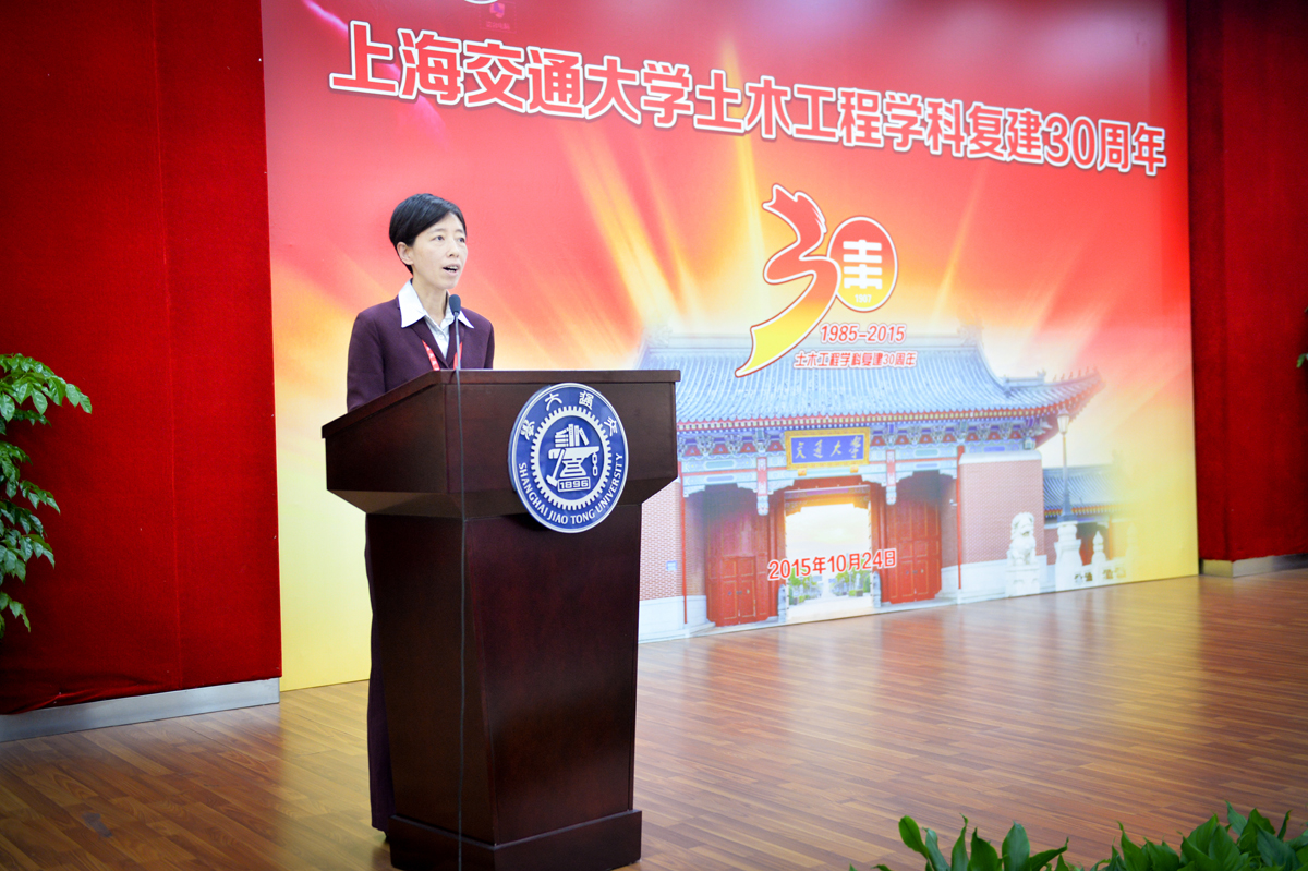 兄弟院校代表、同济大学副书记马锦明致辞。马锦明表示,金年汇金字招牌官网入口土木工程学科可以追溯到1907年,曾经为国家培养了大批优秀人才。1952年随着国家宏观政策的调整,交大土木工程学科整建制调整到同济大学,同济大学的许多老师均为交大校友;1985年金年汇金字招牌官网入口恢复建立土木工程学科以后,同济大学又有许多校友来到交大执教。多年来,两校学科协同合作、共同发展。在国家推进“一带一路”发展战略和进一步深化城市化进程的背景下,土木工程领域面临着更多的机遇与挑战。借此机会,她衷心希望两校土木工程学科继续保持友好协作关系,共谋发展。