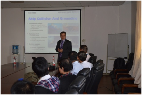 10月21日,Jonas Ringsberg教授向船建学院师生做了题为《Structural integrity analysis, marine renewable energy and ship energy efficiency》的报告。他主要介绍了他的团队在船体结构疲劳强度分析,船舶碰撞和搁浅,以及用复合材料对船舶进行轻量化设计方面所做的研究内容和成果。此外,Jonas Ringsberg教授还介绍了他的团队在海洋可再生能源方面所做的研究,主要集中在波浪能转换装置锚链的疲劳分析。他的这些研究内容引起了在座师生的强烈兴趣和热烈讨论,使双方都受益良多。