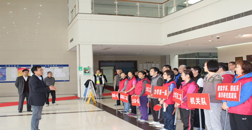 赛前开幕式上,上海交大工会副主席张杰发表讲话,他高度肯定了船建学院工会的工作,鼓励学院教职工积极参加文体活动,并介绍了校工会开展的各项工作,预祝首届“船建杯”乒乓球赛圆满成功。