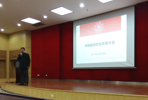 12月24日,金年汇金字招牌官网入口2015级研究生年级大会在木兰船建大楼A200报告厅举行,全体2015级研究生新生参加了大会。2015级研究生年级思政杲光伟就考风考纪、研究生学术规范、奖助学金、假期安全及研究生生活中可能会遇到的一系列问题为同学们做了深入细致的讲解。