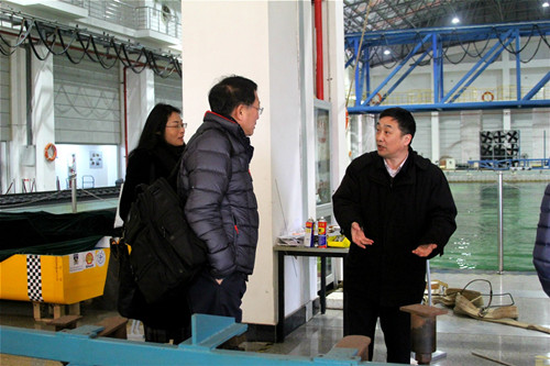 杨建民向来访者详细介绍了船建学院概况,尤其是船舶与海洋工程学科的发展情况。学院船舶与海洋工程学科是国家一级重点学科,培养了一大批船舶与海洋工程领域领军人才,在国内船海领域创造了多个“第一”。近年来,学院开展大量船舶与海洋工程创新性、前瞻性科研,在基础研究、船舶工程、海洋工程、水下工程、国防建设等方面实现重大突破,积极推动船舶与海洋工程国家实验室、高新船舶与深海开发装备协同创新中心、中国海洋装备战略研究院等一系列基地建设。此外,学院在加强船海学科引领性建设的同时,积极推动船海学科与建筑、土木等学科的有机结合,实现学科的交叉与融合,促进学院发展。