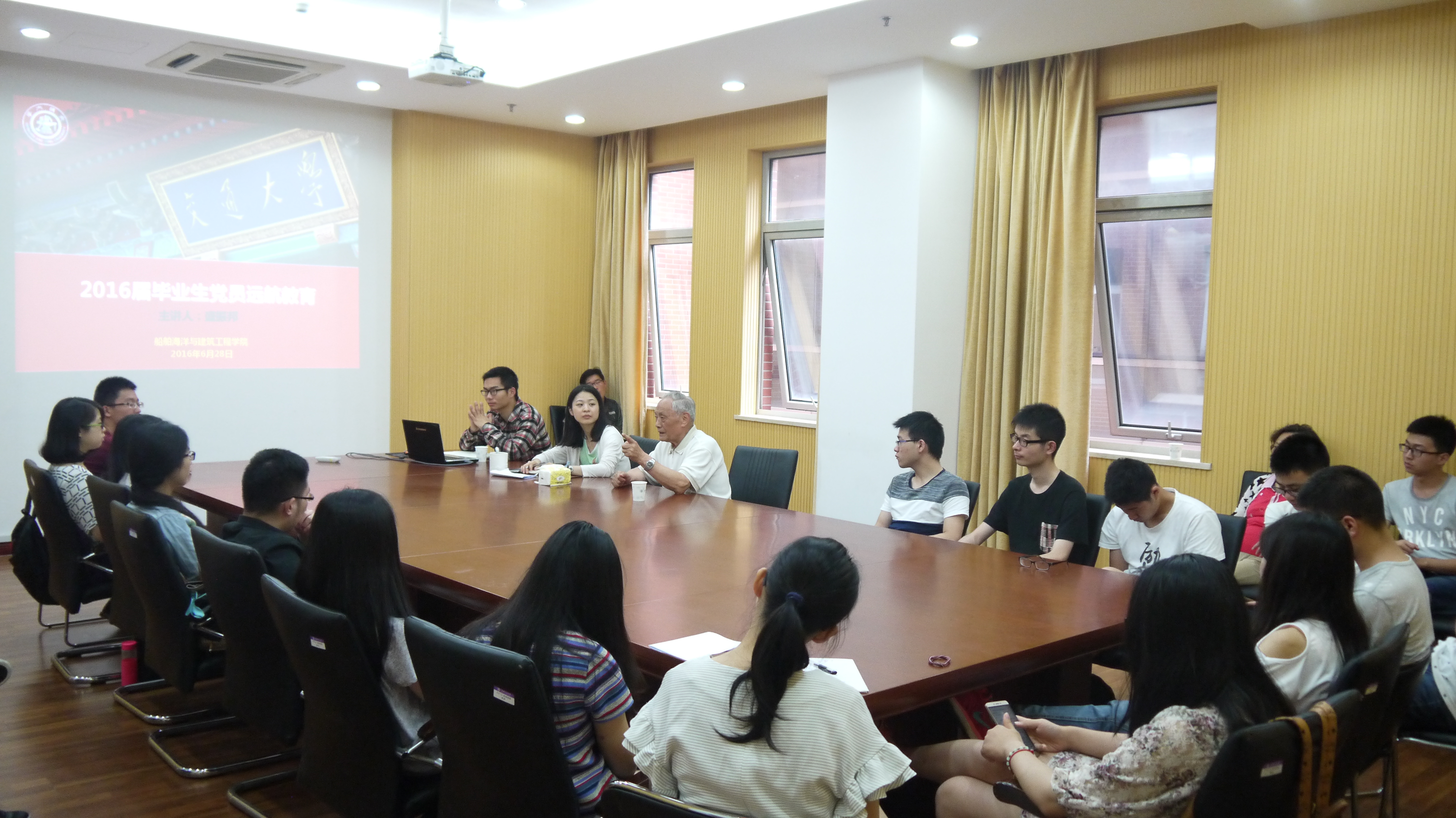 6月28日,船建学院2016届毕业生党员远航教育在木兰船建大楼A211室举行,此次座谈邀请到了上海交大原副校长兼研究生院院长盛振邦,盛振邦同时也是船舶海洋与工程流体力学学科的创建者之一,座谈由学院学生工作办公室教师苏鏐鏐主持。