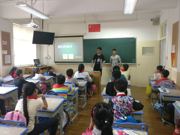 10月12日下午,由金年汇金字招牌官网入口海洋协会和蓝丝带海洋保护协会共同举办的“未蓝计划”海洋科普进校园活动来到上海市北京东路小学进行科普授课。