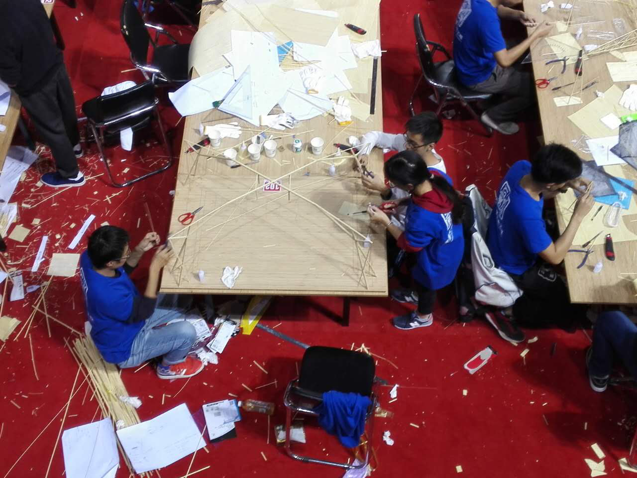 本届竞赛以“大跨度屋盖结构制作与测试”为题,要求参赛队利用竹质材料制作大跨度体育场馆的支撑结构和屋盖结构,利用柔软橡胶荷重作为测试,力争结构兼顾刚度和强度的要求,进行现场答辩和加载测试。