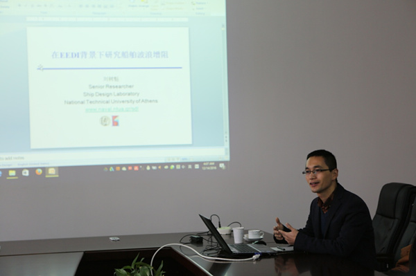 12月14日上午,雅典理工大学资深博士后刘树魁博士,受船建学院马宁教授的邀请,在闵行校区木兰船建大楼B211会议室进行了题为“在减排背景下研究船舶波浪增阻”的学术报告。参会的有船舶数字化智能设计系统(KSHIP)项目组及船建学院相关师生等。