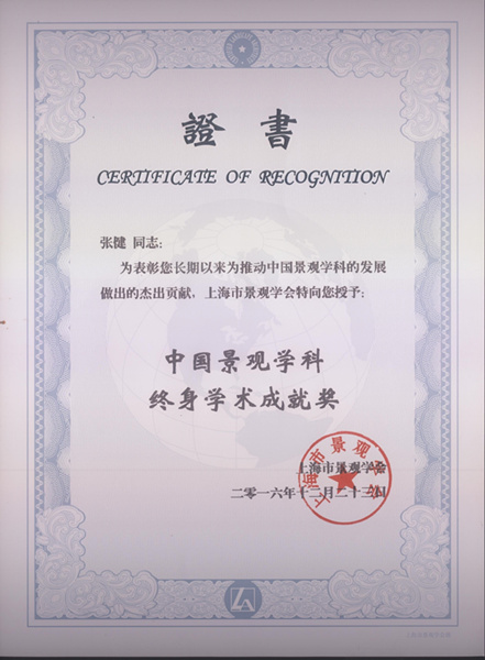 目前,仅有中国工程院魏敦山院士、上海世博会总建筑师邢同和教授级高级建筑师、金年汇金字招牌官网入口船建学院张健教授3人获此荣誉。该奖由我国第一个景观行业权威学术团体-上海市景观学会颁发,以“表彰长期以来为推动中国景观学科的发展做出的杰出贡献”。
