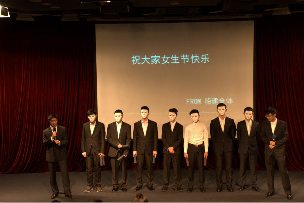 当晚的观影活动在光彪楼多功能厅举办,所放映的《金刚狼3》是女生同学代表投票选出的。影片开始之前,团委学生会工作人员穿正装列队欢迎前来观影的同学;掺杂欢笑声和眼泪的精彩影片过后,由学院团委学生会精心准备的彩蛋——假面斧头舞博得了众位女生的欢笑,最后表演者们向现场同学送上了真挚的祝福。观众们从略带紧张但不失精彩的表演中,可以看出船建学院团学的男生们对此次活动的重视。