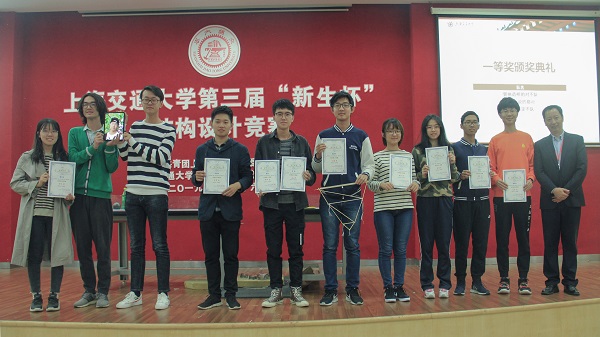 最终,由朱祥辉、王晗和侯晟元组成的“管他桥造的对不”队、由金巧巧、颜培深、贺知行和娄欣怡组成的“陈Sir说的都”队以及由谌志存、吴佳萍、孙良泰和惠宇龙组成的“做的肯定不”队夺得一等奖,“魂断蓝桥”等七支队伍获得二等奖,“RUA!!!”队获得最佳设计奖,“三个白雪公主”等38支队伍获得三等奖。赛后宋晓冰老师、周拥军老师、马宏旺老师和陈思佳老师分别为获得一等奖、二等奖和最佳设计奖的同学颁发了奖状。
