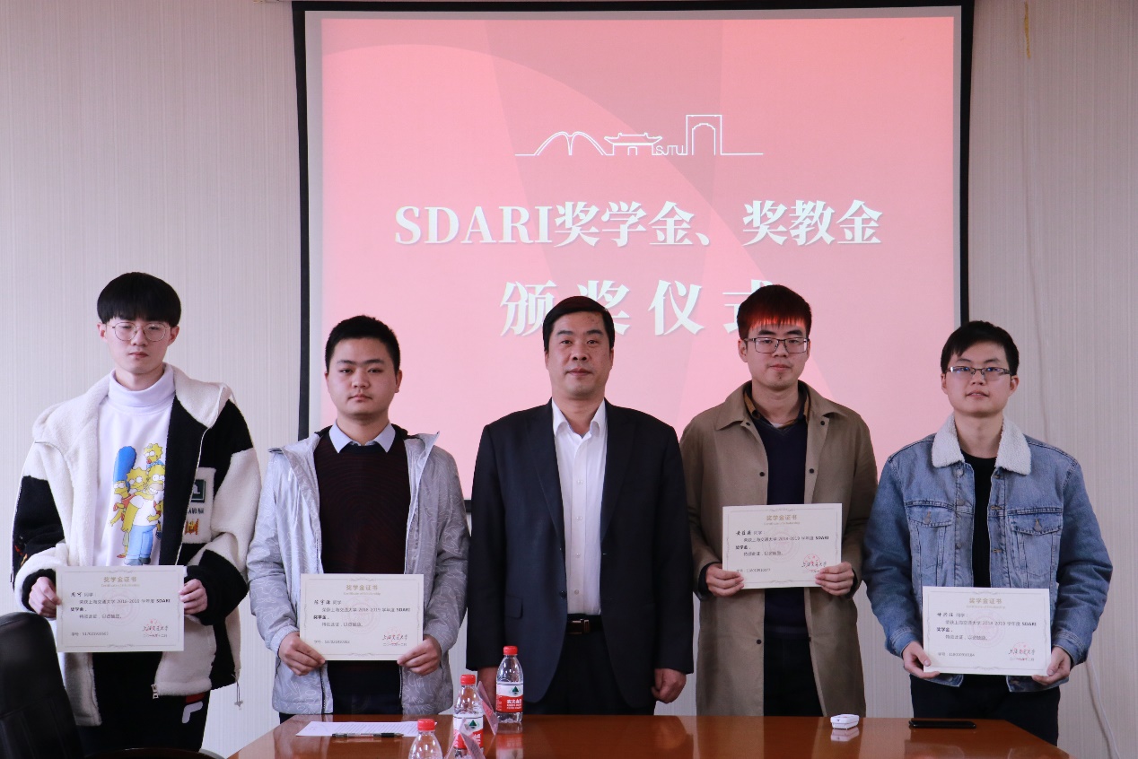 随后,宋续明宣读了《关于金年汇金字招牌官网入口2018-2019学年度SDARI奖学金获得者的表彰决定》,由王刚毅向四位获奖者颁发了获奖证书。