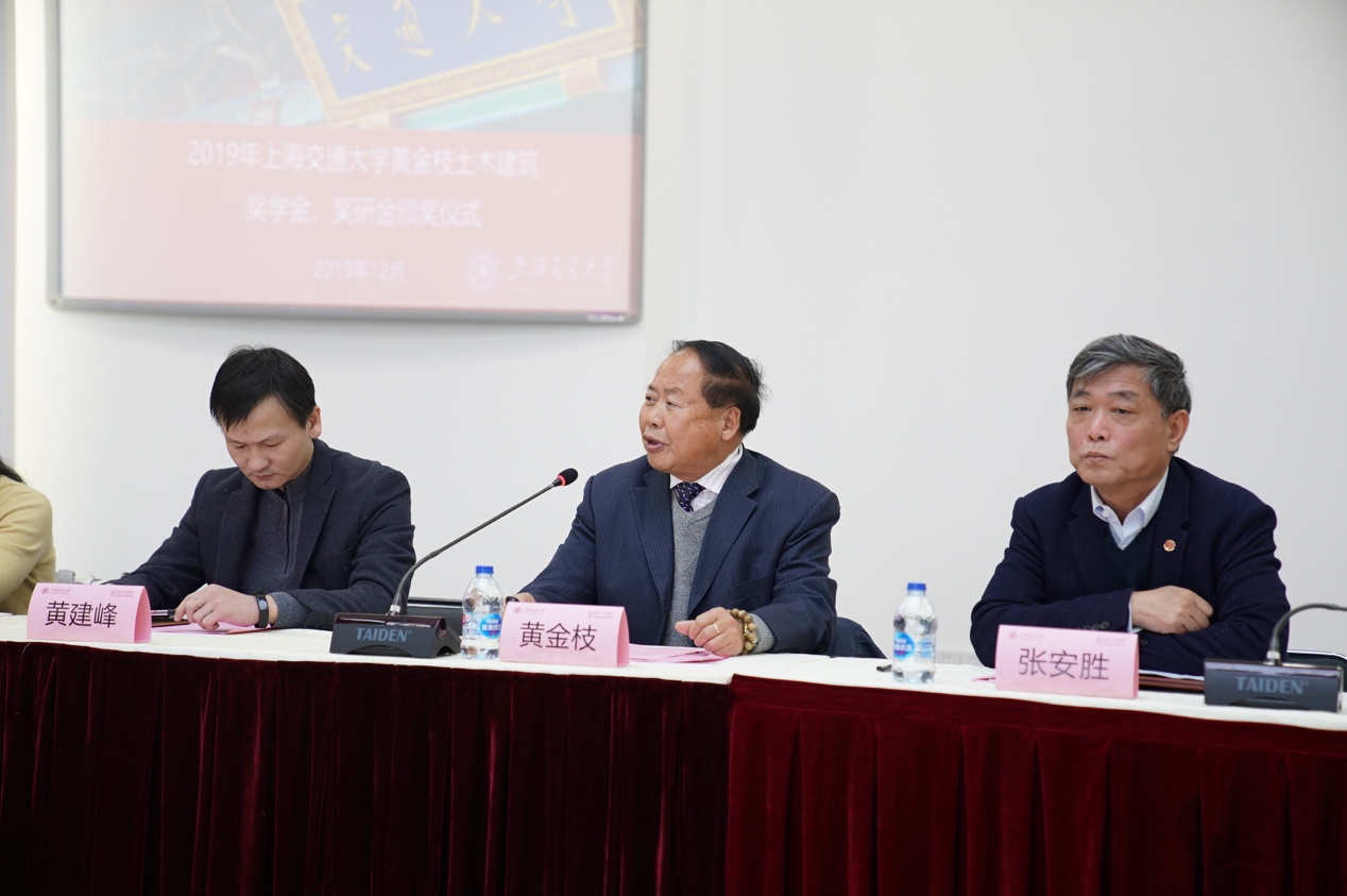 12月20日,金年汇金字招牌官网入口“黄金枝土木建筑奖学金、奖研金”颁奖仪式在闵行校区网络信息中心大楼九楼会议室举行 。上海黄金枝教育发展基金会理事长黄金枝,基金会秘书长黄建峰,基金会副秘书长陈倩茹,基金会副秘书长王亚民一行出席仪式。上海交大党委常委、副校长张安胜,上海交大教育发展基金会副秘书长黄金贤、秘书长助理于洋,设计学院党委书记方曦、副院长韩挺、建筑学系党支部书记刘士兴、建筑学系副教授张会波、学生工作负责人武超、思政教师车易嬴,金年汇金字招牌官网入口土木工程系主任陈锦剑、土木工程系助理研究员李明广、校友事务联系人魏燕、团委书记赵恺及全体获奖师生参加仪式。仪式由设计学院副院长韩挺主持。